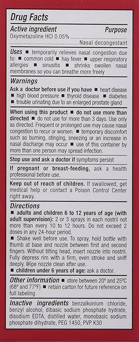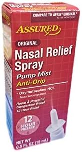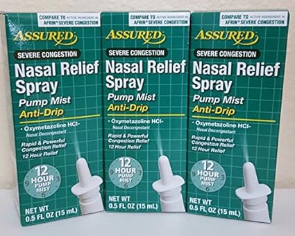 Assured Nasal Relief Spray 12 Hour Pump Mist Oxymetazoline HCL 05 fl. Nasal Relief Spray Pump Mist Anti-drip Severe Congestion Oxymetazoline HCI 12 Hours 3 Pack. To spray hold bottle with thumb at base and nozzle between first and second fingers.