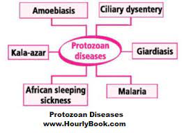 African sleeping sickness is a disease caused by the protozoa which are carried by the tsetse fly and are transmitted to humans through tsetse fly bites. This is a sexually transmitted disease caused by the Trichomonas vaginalis species. Amoebiasis is a protozoan disease caused by Entamoeba histolytica which secretes enzymes that dissolve the hosts tissues.
