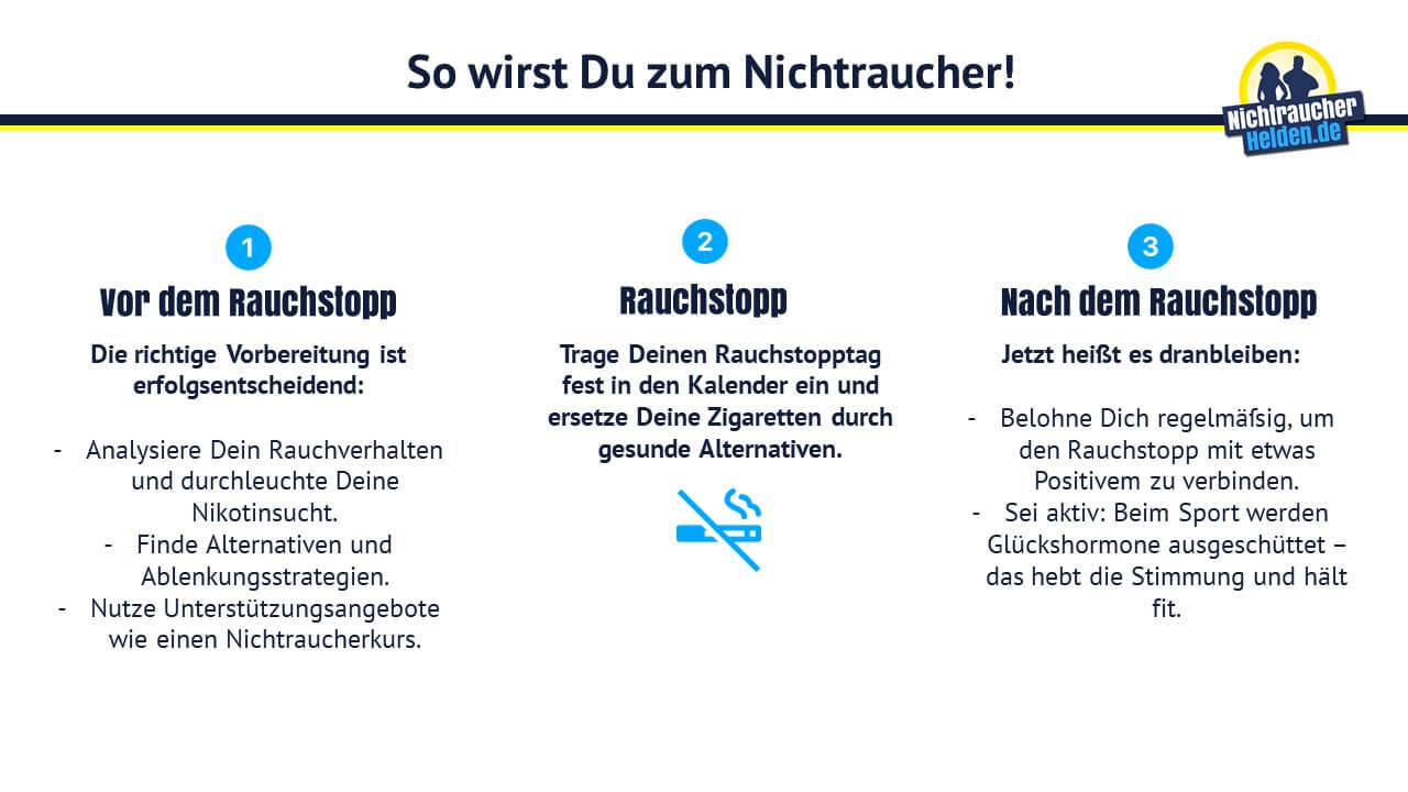 Nur so kann langfristig der Rauchausstieg funktionieren. Du verzichtest bewusst auf die Zigaretten und lernst Deinen Alltag ohne Zigaretten zu führen. Doch wer die ersten 3 Tage ohne Nikotin geschafft hat der darf sich glücklich schätzen.