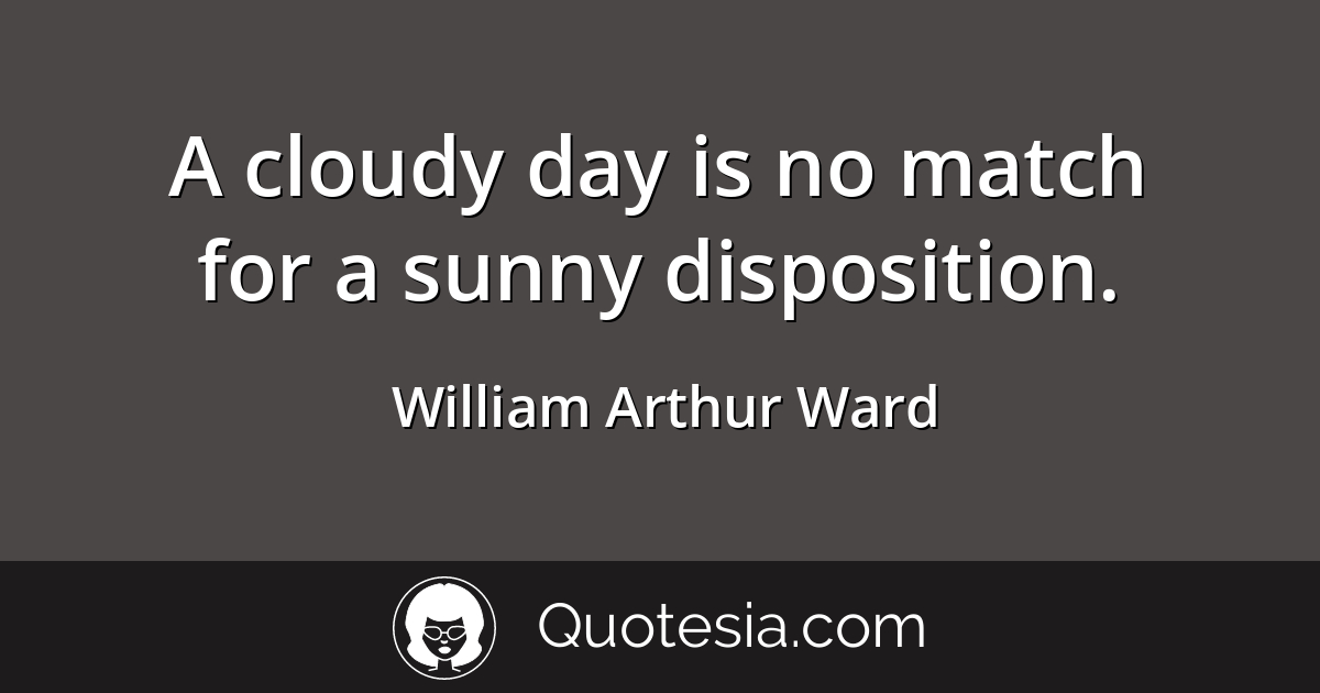 A cloudy day is no match for a sunny disposition William Arthur Ward. I ran over to him and gave him the biggest hug I could. Items to Brighten Your DayA cloudy day is no match for a sunny disposition. My mom and Ali Hawkins just sat in the car looking at me. There is divinity in the clouds Lailah Gifty Akita. Sees your anxieties but frees your spirit. Feels your fears but fortifies your faith. A cloudy day is no match for a sunny disposition. Nov 10 2013 - A cloudy day is no match for a sunny disposition.
