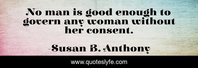 No man is good enough to govern any woman without her consent --- Susan B. No man is good enough to govern any woman without her consent declared Susan B. This quote is about consent free-will freedom independence male-female-relationships. No man is good enough to govern any woman without her consent Subjects. No man is good enough to govern any woman without her consent --- Susan B. No man is good enough to govern any woman without her consent. Join the union girls and together say Equal Pay for Equal Work.